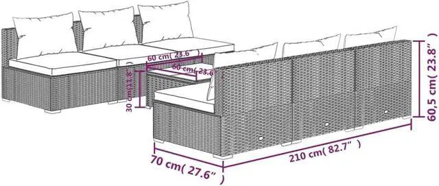 - Middle sofa dimensions (each): 27.6" x 27.6" x 23.8" (L x W x H)