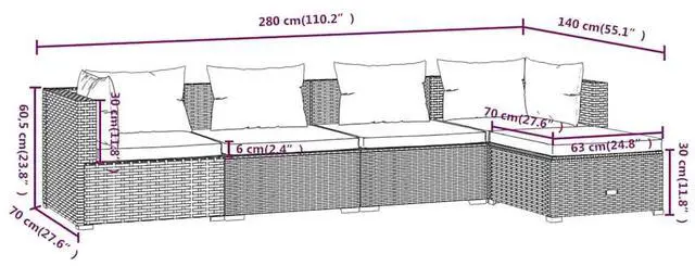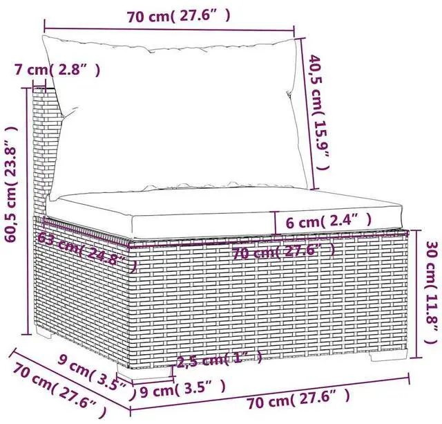 - Corner/Middle sofa dimensions (each): 27.6" x 27.6" x 23.8" (L x W x H)