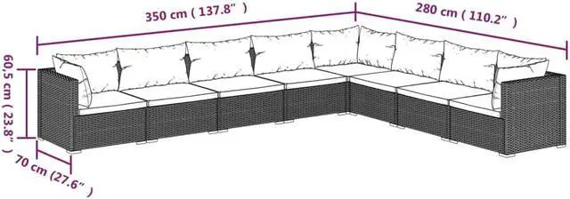 - Corner/Middle sofa dimensions (each): 27.6" x 27.6" x 23.8" (L x W x H)