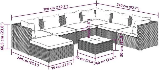- Seat cushion dimensions: 27.6" x 24.8" x 2.4" (L x W x T)