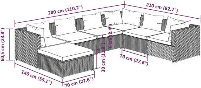 - Seat cushion dimensions: 27.6" x 24.8" x 2.4" (L x W x T)
