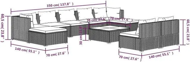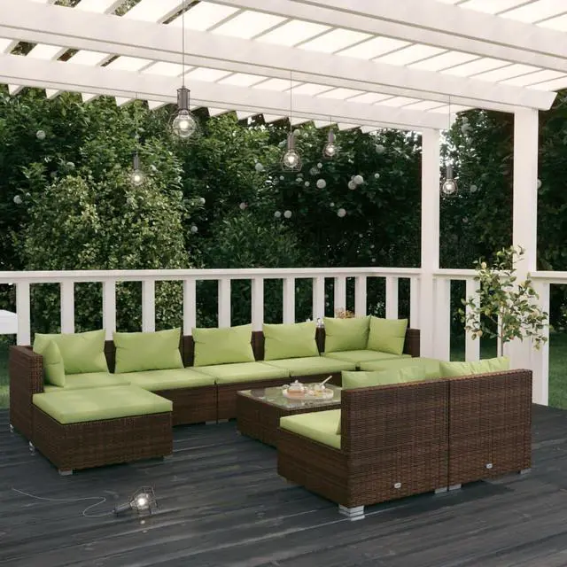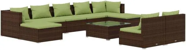 vidaXL Patio Lounge Set Outdoor Sectional Sofa Set 10 Piece Brown Poly Rattan
