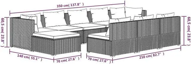 - Dimensions of each middle sofa: 27.6" x 27.6" x 23.8" (L x W x H)