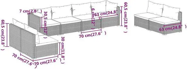 - Seat cushion dimensions: 27.6" x 24.8" x 2.4" (L x W x T)