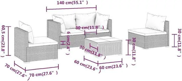 - Dimensions (each): 27.6" x 27.6" x 23.8" (L x W x H)
