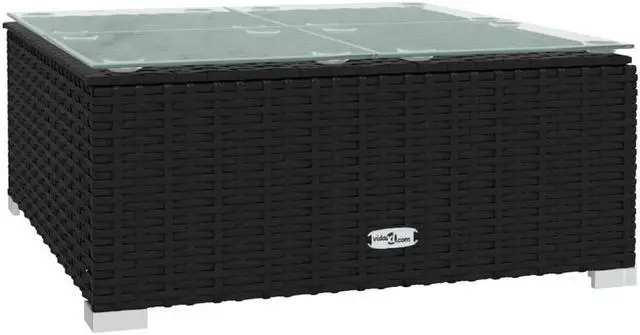 - Material: PE rattan, powder-coated steel, tempered glass, plastic
