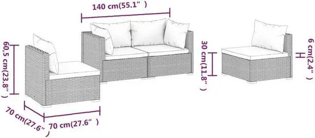 - Dimensions (each): 27.6" x 27.6" x 23.8" (L x W x H)