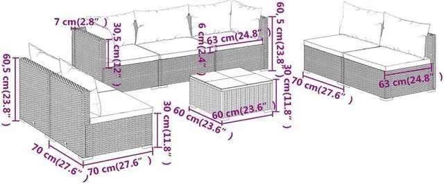- Dimensions (each): 27.6" x 27.6" x 23.8" (L x W x H)