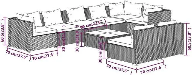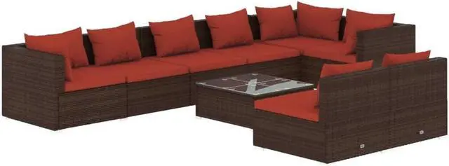 vidaXL Patio Lounge Set Outdoor Sectional Sofa Set 9 Piece Brown Poly Rattan