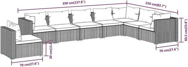 - Seat cushion dimensions: 27.6" x 24.8" x 2.4" (L x W x T)