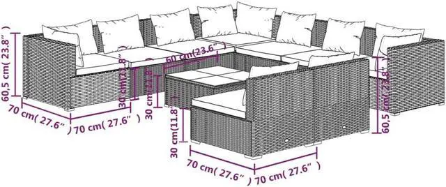 - Seat cushion dimensions: 27.6" x 24.8" x 2.4" (L x W x T)