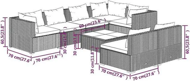 - Sofa material: PE rattan, powder-coated steel, plastic