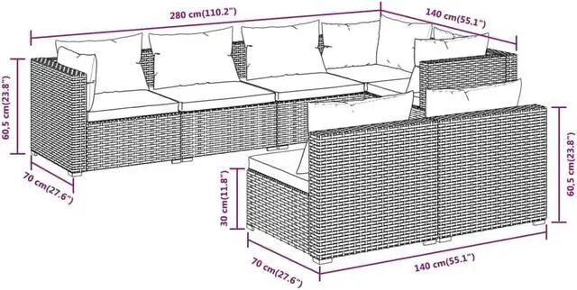 - Seat cushion dimensions: 27.6" x 24.8" x 2.4" (L x W x T)