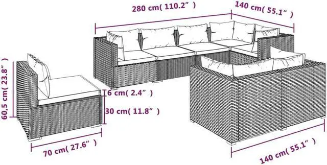- Sofa material: PE rattan, powder-coated steel, plastic
