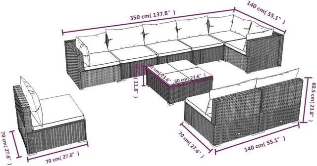 - Sofa material: PE rattan, powder-coated steel, plastic