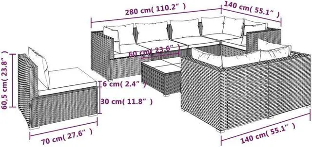 - Sofa material: PE rattan, powder-coated steel, plastic