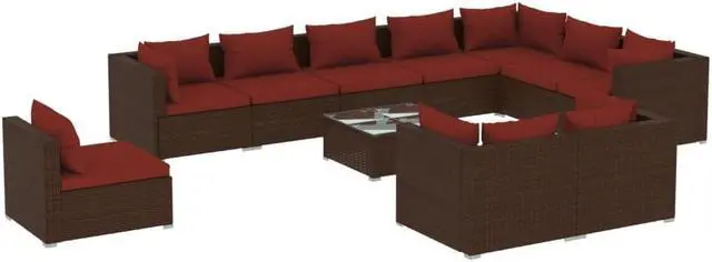 vidaXL Patio Lounge Set Outdoor Sectional Sofa Set 11 Piece Poly Rattan Brown