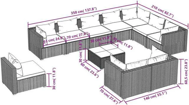• Sofa material: PE rattan, powder-coated steel, plastic