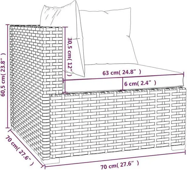- Seat cushion dimensions: 27.6" x 24.8" x 2.4" (L x W x T)