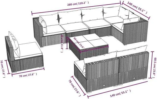 - Sofa material: PE rattan, powder-coated steel, plastic