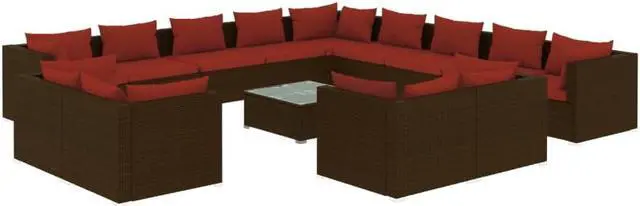 This trendy 14-piece poly rattan garden lounge set is meant to be a great addition to your outdoor living space. It adds a touch of modern elegance to your patio, balcony or garden with its understated and stylish design.