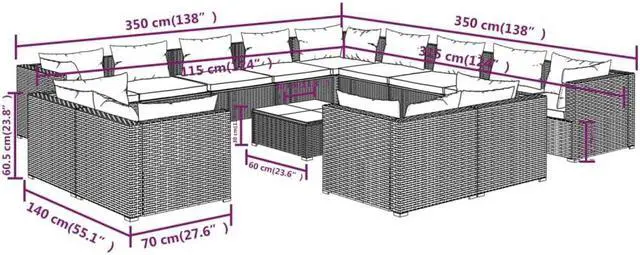 - Dimensions of each corner sofa: 27.6" x 27.6" x 23.8" (L x W x H)