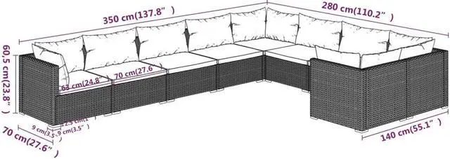 Relax and enjoy outdoor space with your family and friends on this classic poly rattan patio lounge set with cushions!
