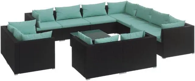 This trendy 12-piece poly rattan garden lounge set is meant to be a great addition to your outdoor living space. It adds a touch of modern elegance to your patio, balcony or garden with its understated and stylish design.
