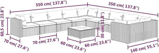 - Dimensions of each sofa: 27.6" x 27.6" x 23.8" (L x W x H)