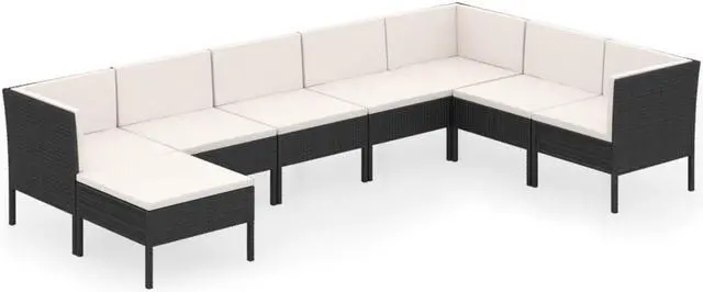 vidaXL Patio Lounge Set 8 Piece with Cushions Poly Rattan Black Garden Sofa