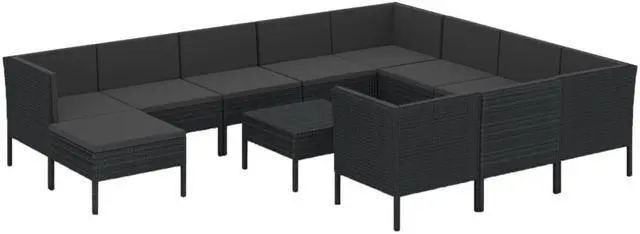 vidaXL Patio Lounge Set 12 Piece with Cushions Poly Rattan Black Garden Sofa