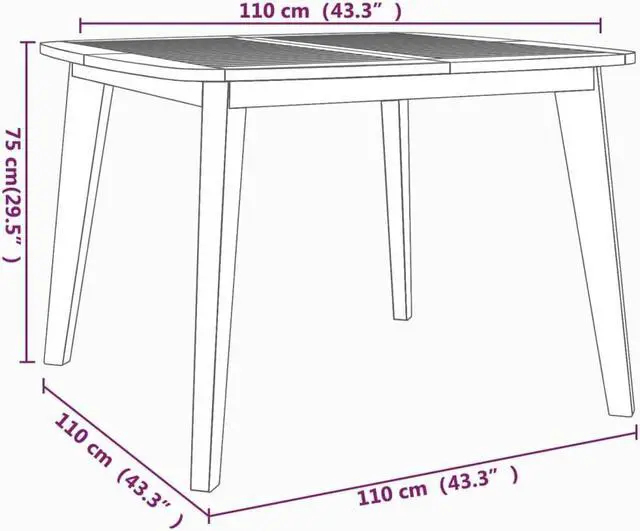 - Table dimensions:43.3" x 43.3" x 29.5" (L x W x H)