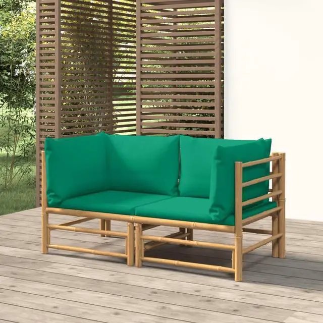 Enjoy a cup of coffee or tea with pleasant weather in your outdoor space with this elegant bamboo patio corner sofa!