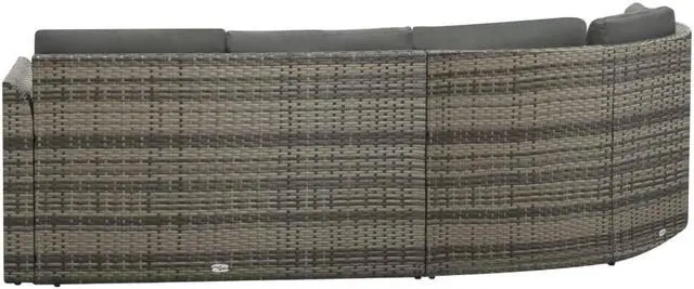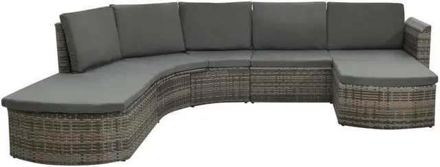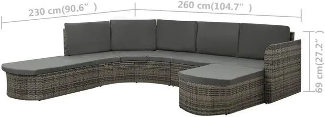 This patio lounge set combines style and functionality and will become the focal point of your garden or patio. The whole furniture set is designed to be used outdoors year-round. Thanks to the weather-resistant and waterproof PE rattan, the lounge set is easy to clean, hard-wearing and suitable for daily use. The seat set features a sturdy powder-coated steel frame, which is highly durable. It is also lightweight and modular, which makes it completely flexible and easy to move around to suit any setting. The thick, removable cushions are highly comfortable.