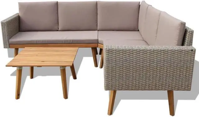 This garden sofa set will make a great addition to your outdoor living space. It will add a touch of modern elegance to your patio, balcony or garden with its understated, yet stylish design. The easy-to-clean and hardwearing garden furniture set is made of weather-resistant and waterproof PE rattan, making it suitable for daily outdoor use. The oil-finished wooden frame makes the set very sturdy and durable. This set is delivered with highly comfortable, thickly padded seat cushions and back cushions. The covers are equipped with zips and are washable.