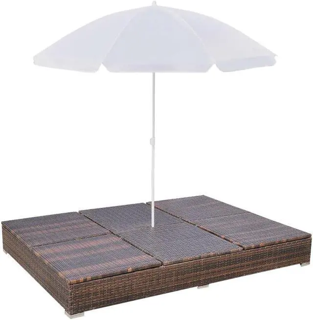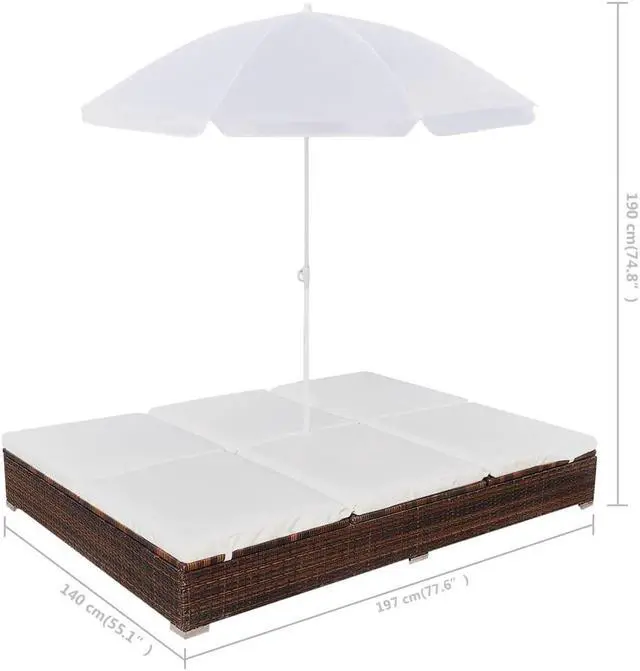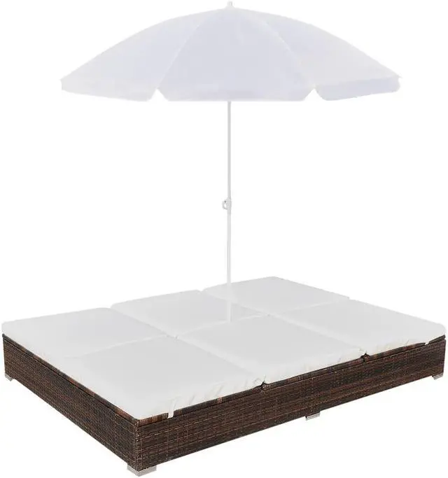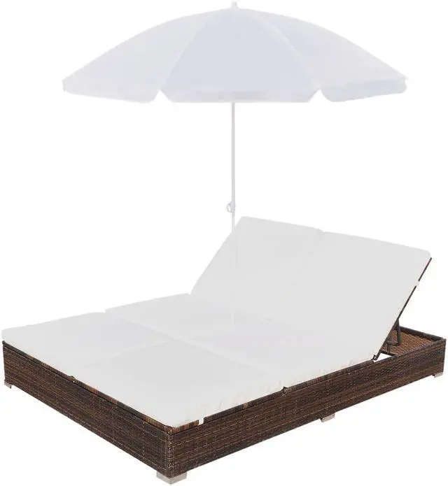 The included umbrella is made of UV-resistant polyester and will be perfect to block the sun's harmful UV rays. Naturally, the umbrella can also be removed and stored so you can enjoy the sun freely. The sun lounger is easy to assemble. Delivery includes 1 double sun lounger, 2 large cushions, and 1 durable umbrella.