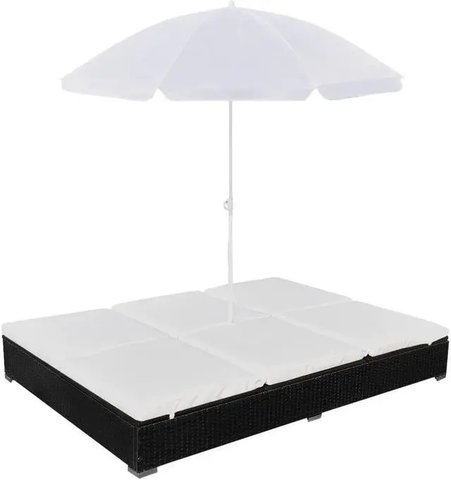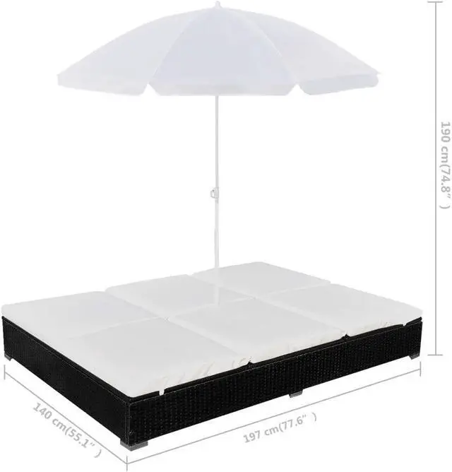 The included umbrella is made of UV-resistant polyester and will be perfect to block the sun's harmful UV rays. Naturally, the umbrella can also be removed and stored so you can enjoy the sun freely. The sun lounger is easy to assemble. Delivery includes 1 double sun lounger, 2 large cushions, and 1 durable umbrella.