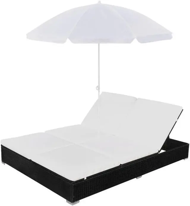A double sun lounger with 2 removable cushions and 1 umbrella