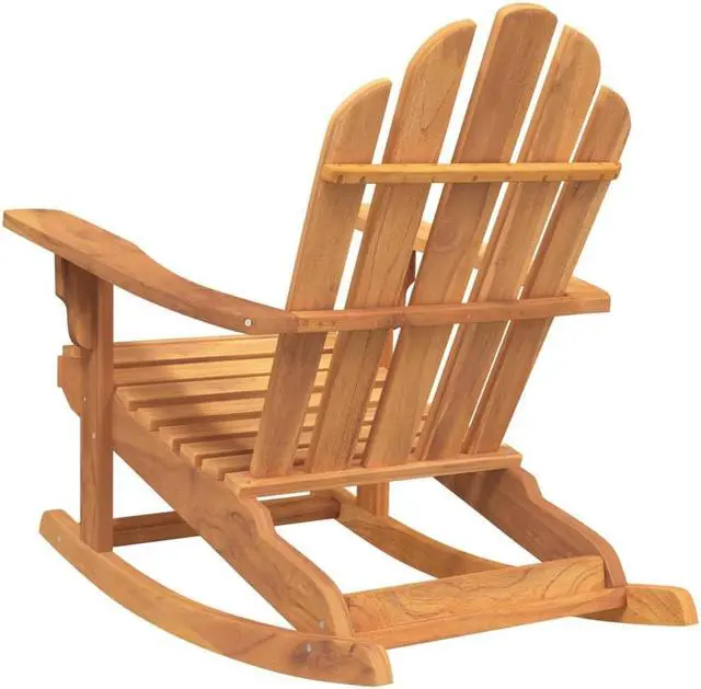 This Garden Adirondack Rocking Chair set adds a chill vibe to any outdoor area. Made from strong solid teak wood, it looks awesome with its rich brown color.