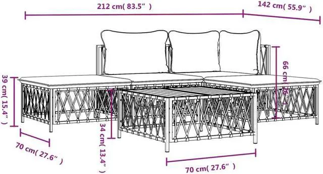 - Seat cushion dimensions: 27.6" x 27.6" x 2" (L x W x T)
