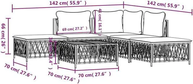 Sturdy frame: The powder-coated steel frame makes the lounge set sturdy and stable for daily outdoor use.