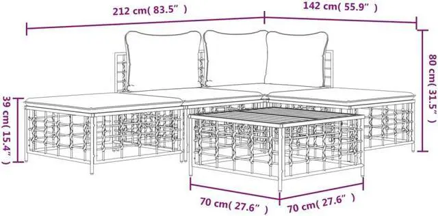 Sturdy and stable frame: The steel frame of the lounge set ensures sturdiness and stability.