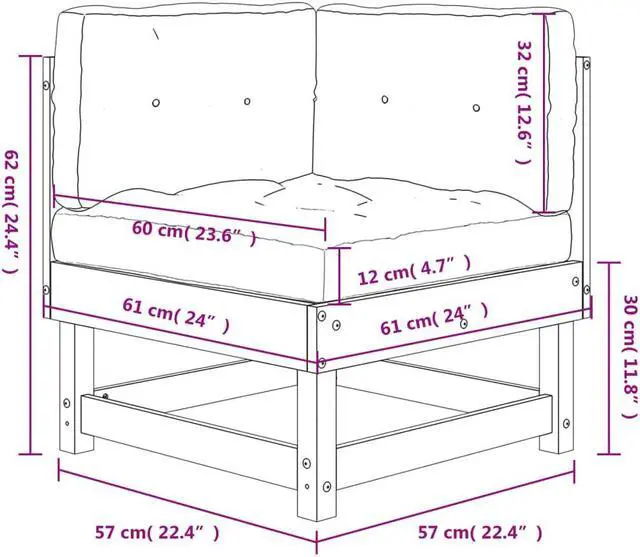 Back cushion dimensions: 23.6" x 12.6" x 4.7" (L x W x T)