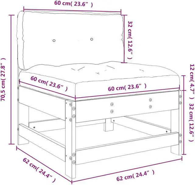 Back cushion dimensions: 23.6" x 12.6" x 4.7" (L x W x T)