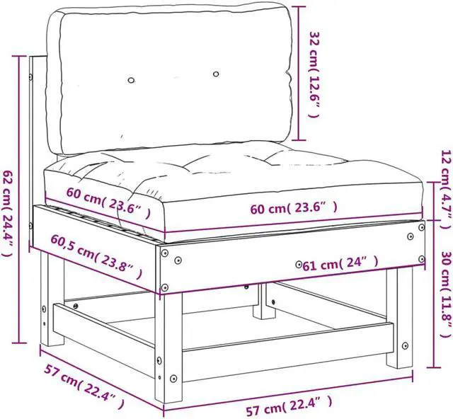 Seat cushion dimensions: 23.6" x 23.6" x 4.7" (L x W x T)