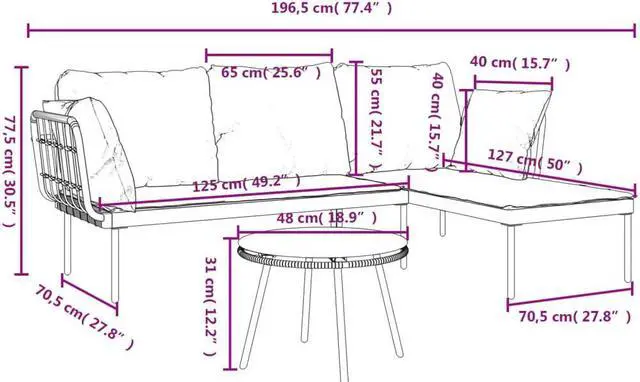 L-shaped sofa dimensions (s): 49.2" x 27.8" x 30.5" (W x D x H)