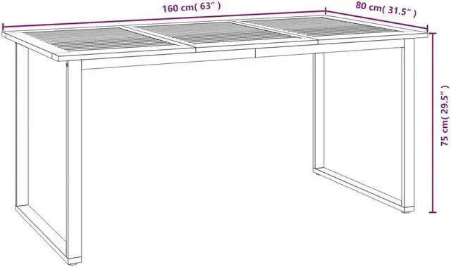 - Garden table dimensions: 63" x 31.5" x 29.5" (W x D x H)
