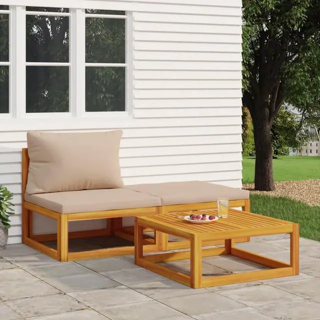 This wooden patio lounge set with cushions will be a perfect choice for coffee time or for lounging around.