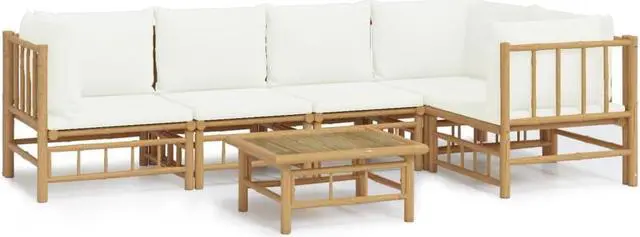 vidaXL Patio Furniture Set 6 Piece Lounge Set with Cream White Cushions Bamboo