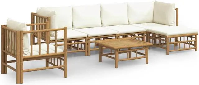 Enjoy a cup of coffee or tea with pleasant weather in your outdoor space with this elegant bamboo patio lounge set!